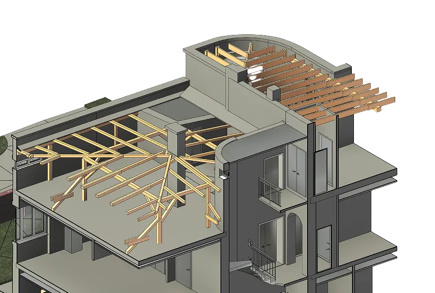 By processing point cloud data, we create highly accurate 3D models of structures using REVIT software.